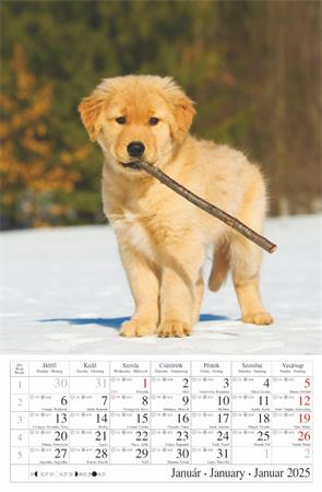 -naptár rész: magyar, angol, német nyelven, magyar ünnepek és névnapokkal, napkelte, napnyugta és holdállás feltüntetésével